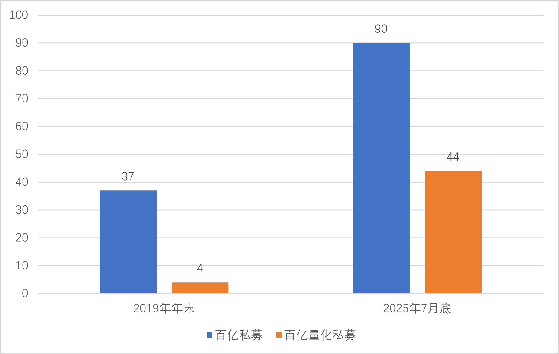 图:2019年年末及2025年7月底百亿私募及百亿量化私募数量对比数据来源:私募排排网、界面新闻整理